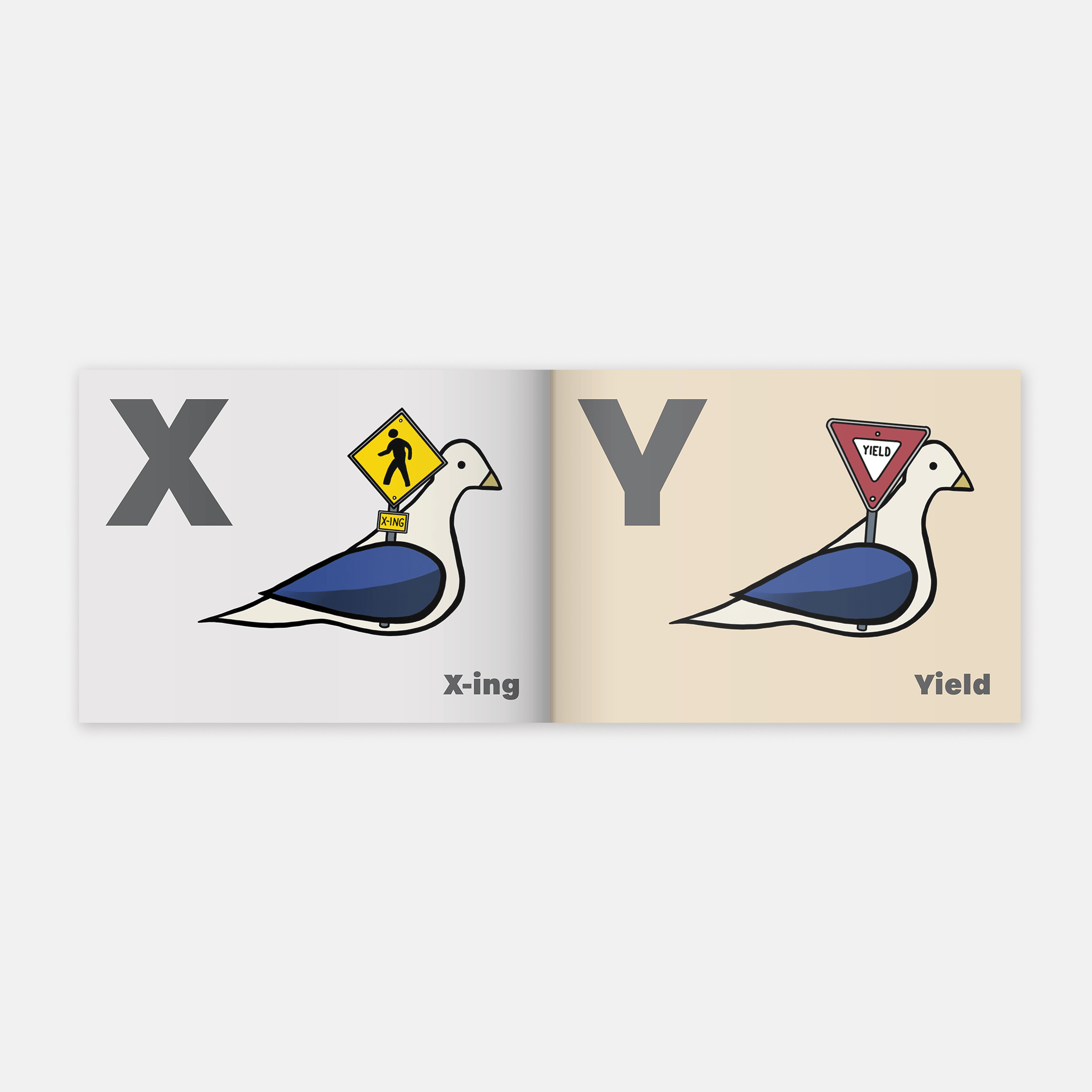 T is for Traffic Cone is a joyful urban alphabet book inspired by city sidewalks, construction zones, and the pigeons who know them best. Each letter pairs a familiar city object with a steady, unbothered pigeon who shares space with the alphabet itself, often carrying, wearing, or partially covered by the item at hand. With quiet humor and visual wit, the pigeon becomes part of each letter’s world, inviting little ones to notice and delight in the everyday details of city life.