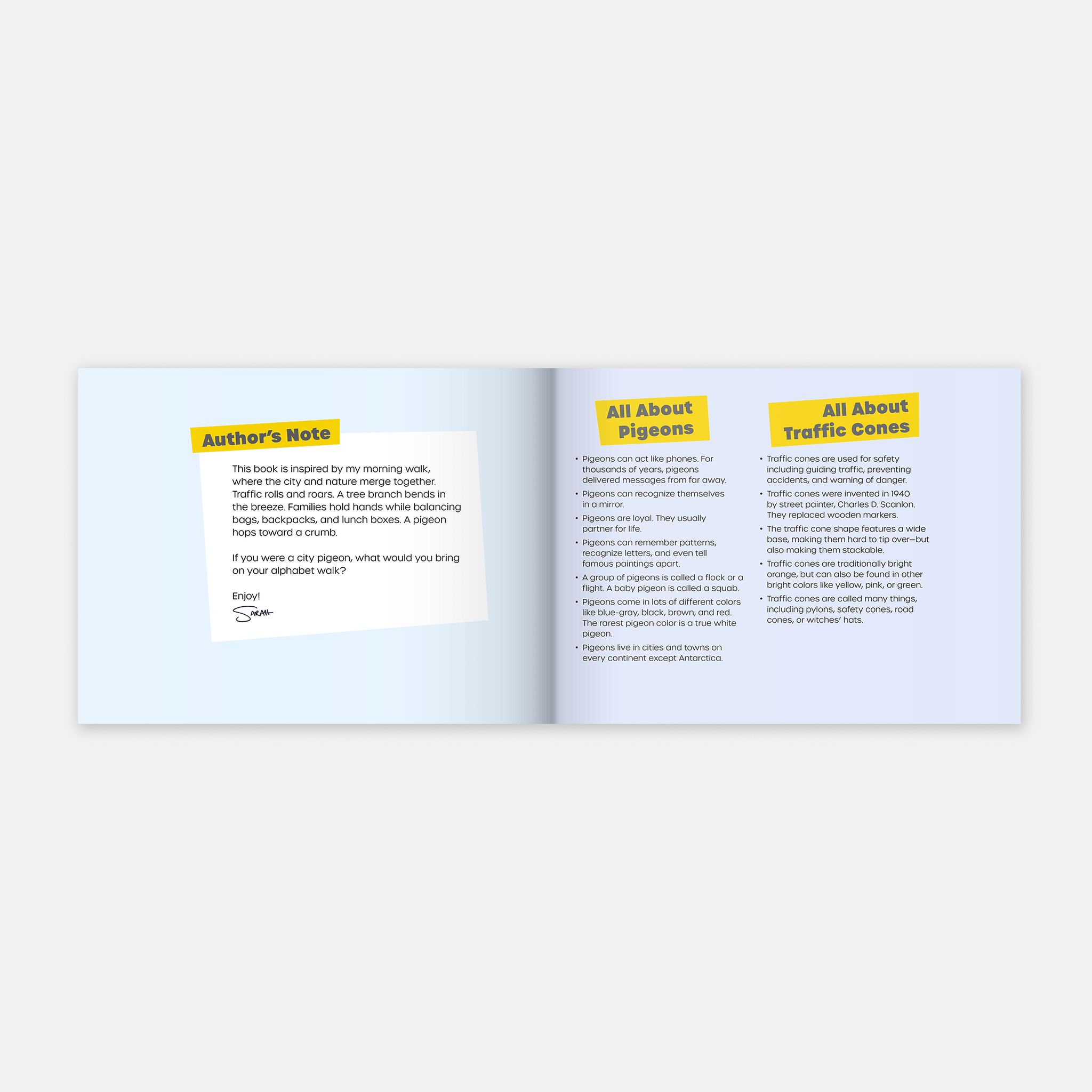 With expanded backmatter featuring fun facts about pigeons, T is for Traffic Cone offers both visual delight and gentle learning, making it an engaging read for city kids, visitors, and anyone who loves pigeons and bustling urban life.